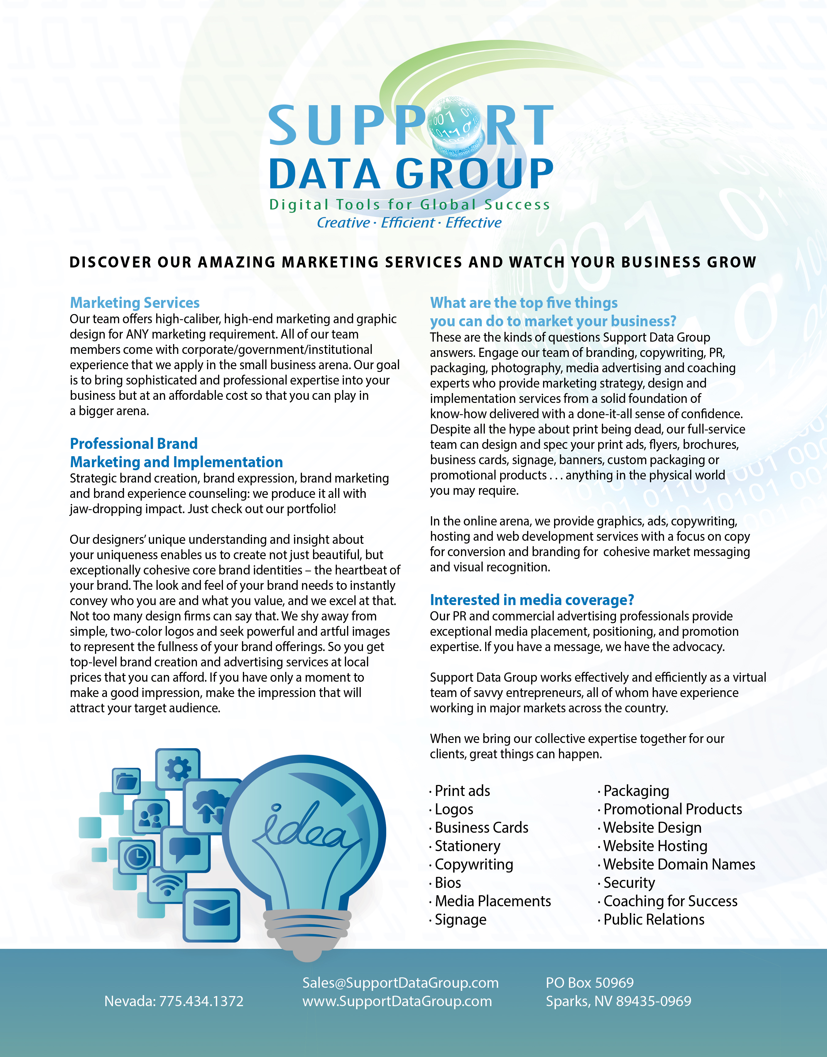 1-Support-Data-Inc-Flyer---Main-Brochure 2-Support-Data-Inc-Flyer---Marketing-Services 3-Support-Data-Inc-Flyer---Copywriting-Services 4-Support-Data-Inc-Flyer---Web-Design 5-Support-Data-Inc-Flyer---Online-Shopping-Cart 6-Support-Data-Inc-Flyer---Web-Hosting